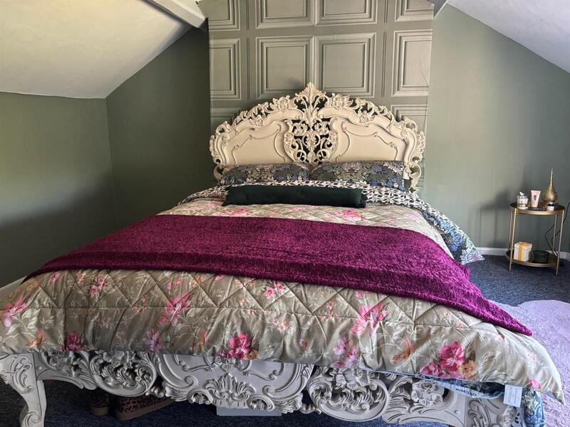 Double glazed window to side. Fitted with a three piece suite comprising claw foot freestanding bath, tiled corner shower cubicle, low level w.c. and vanity wash hand basin with storage beneath. Wall mounted heated towel rail. Radiator.