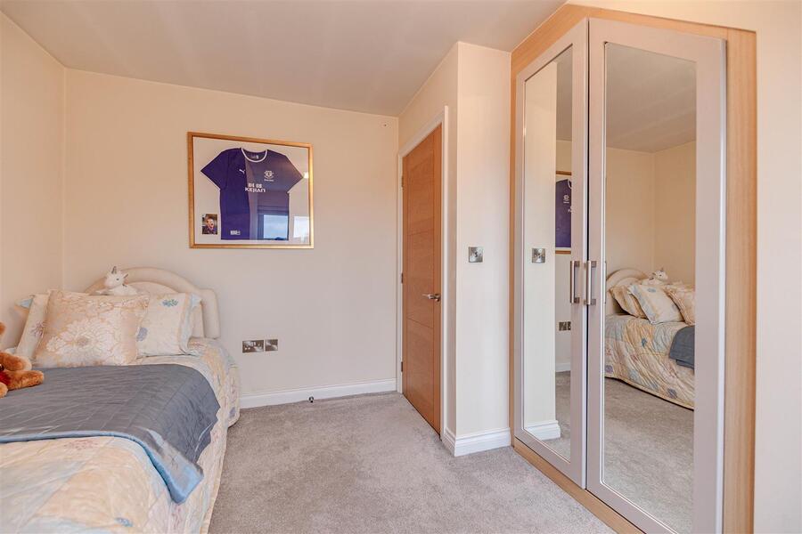 Fitted with a double shower cubicle, vanity wash hand basin and low level w.c. Walls and floor fully tiled. Wall mounted radiator/heated towel rail.