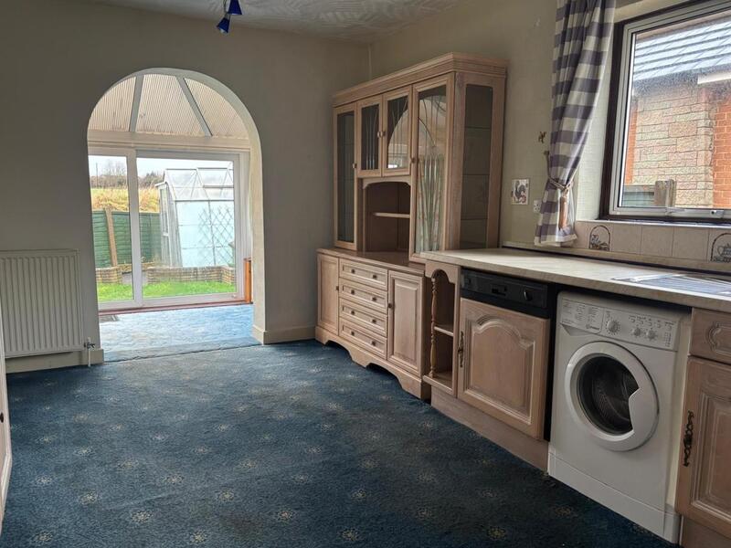 Double glazed sliding patio doors to rear. Plumbed for automatic washing machine and space for tumble dryer. Wall mounted Glow-worm gas central heating boiler. Built in cupboard with shelving.