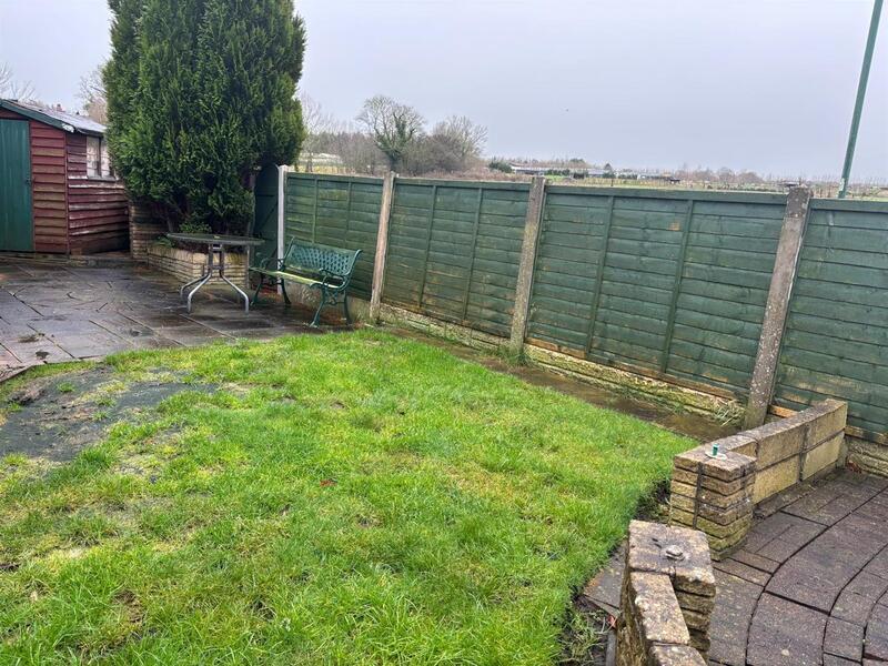 There are open views to the rear of the property over farmland. There is a paved seating area, lawn, wooden storage shed and hardstanding with greenhouse.