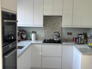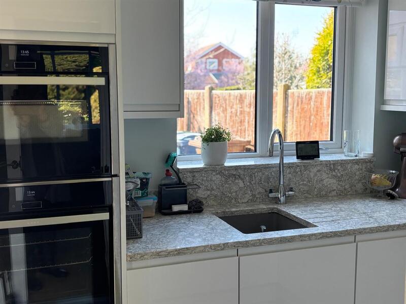 Double glazed window to rear. Fitted with a range of white wall and base units with quartz work surfaces incorporating undermounted composite sink unit, and four ring gas hob with extractor hood over. Built in eye level double oven and grill/microwave. Integrated dishwasher. N.B. All electric appliances except the extractor hood are Neff. Radiator. Double glazed French doors to Garden Room.