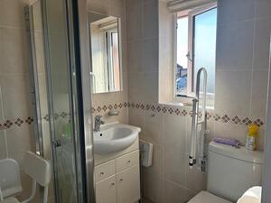 Double glazed opaque window to rear. Fitted with a shower cubicle, vanity wash hand basin and low level w.c. Tiled walls. Heated towel rail.