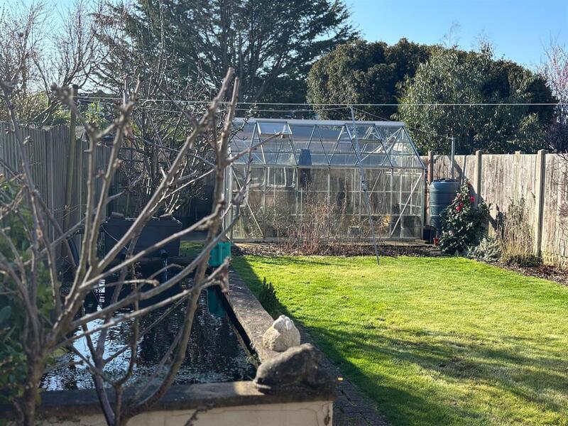 The attractive well kept gardens, which are not directly overlooked from the rear, have a paved patio, a raised fish pond, and is laid to lawn. There are well established borders with an array of fruit trees to include apple and pear. A greenhouse sits at the end of the pathway alongside the lawn and there is storage space for compost bins.